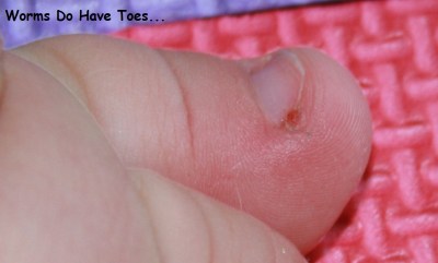I’m impressed with his enthusiasm for the Jenga container. But, this time enthusiasm gets the better of Worm.