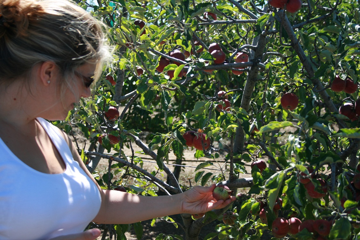 Guys, be gentle. Ripe apples will easily detach from the tree. Don’t take the part with the leaves!