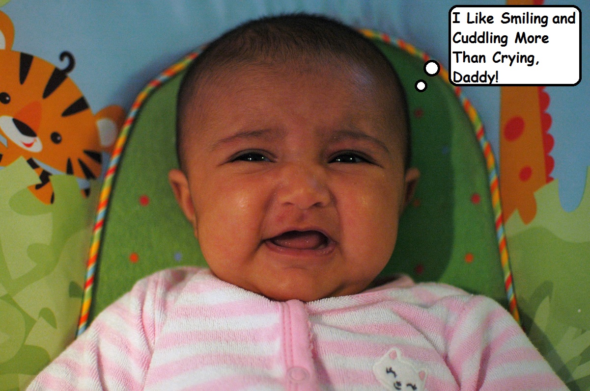 Then there’s Smush, the cuddler. She loves to be close to another warm body. Her spaghetti noodle arms aren’t developed quite yet, so she mainly cuddles using her face. We have ultrasound pics of Smushie trying to ‘hug’ her mommy’s womb from the inside. Her cheeks mashed up against her mom’s uterine wall and reminded me of a pug. (But I drew the line at calling my daughter a pug. I’ve got standards! Besides, Steph didn’t approve it.) I can’t blame the little girl. She’s got cheeks like pillows and still uses them to shamelessly nestle and snooze anywhere on anyone. Sometimes, I smush her cheeks together for my own amusement. (I have a feeling that will come back to bite me in the ass.) Smush. Looking at those pudgy cheeks, I can’t think of a more fitting name.