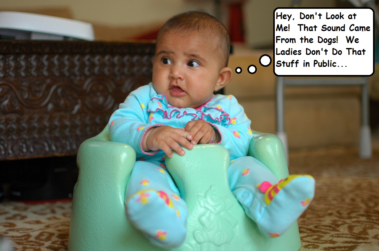 VOMIT: Worm wasn’t this messy. In fact I can count on one hand how many times he spit up during his infancy. In Smush’s case, I can barely fit on one hand the number of times she spits up in a day. Steph tells me that my technique in holding Smush puts pressure on her stomach and makes for easy projectile vomiting. I hold her as I would hold a bunch of clothes that need to go to the laundry, i.e. stuffed under my arm. I did it with Worm and it worked fine. Besides, it makes my arms look more muscular when I carry her around the playground. I see no reason why Smush can’t follow the path that big brother has cleanly (and I stress, cleanly) set out already. (In case you’re wondering…being in close proximity of my armpits has not been clinically proven to cause nausea, vomiting, and excessive drooling.)