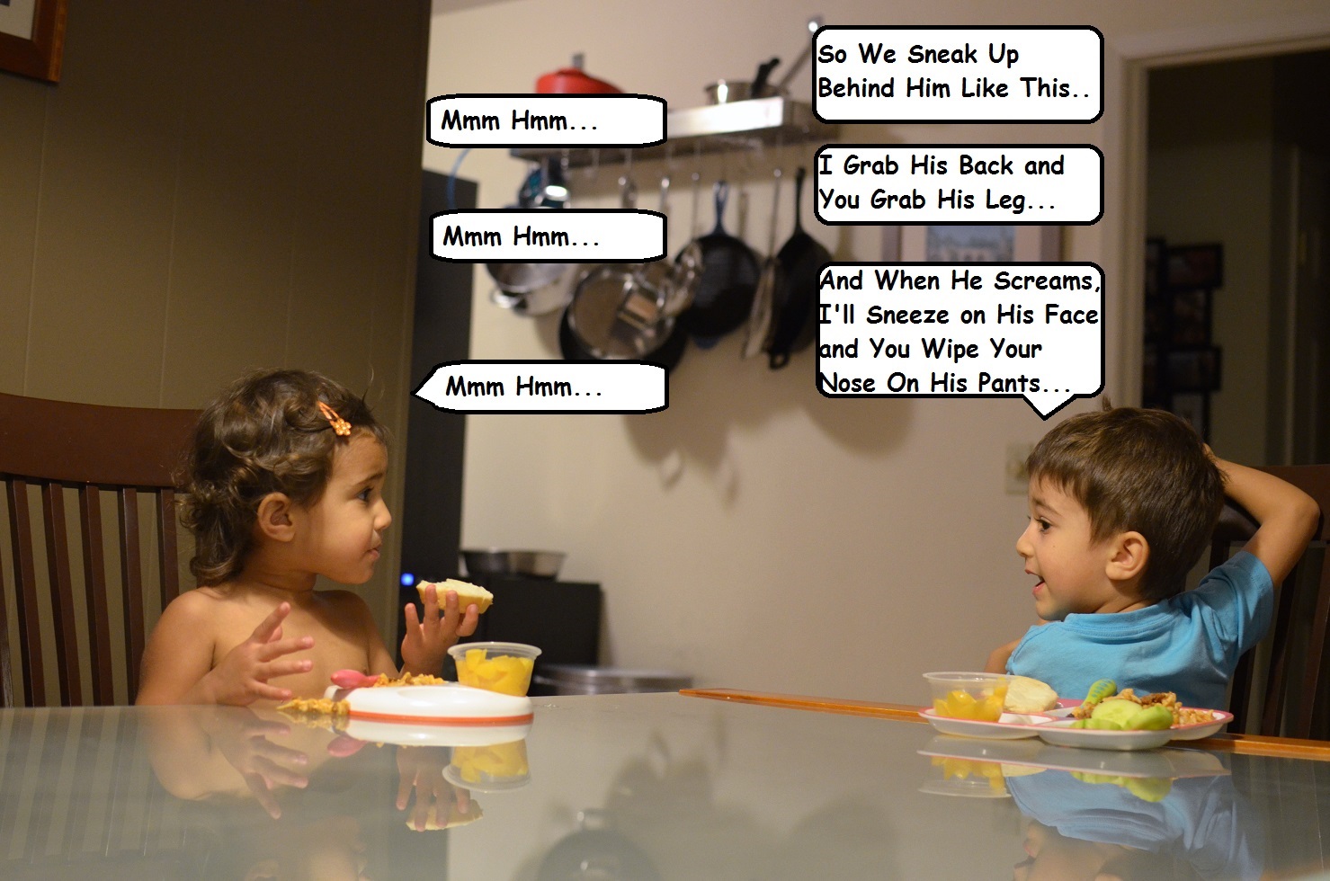 Every now and then I find that my kids are absorbing the things I am telling them. There are germs on that doorknob you’re licking. Sharing with your sister lets both of you enjoy the same moment. Don’t run with scissors. Be kind to others. Mostly, I feel like I’m talking to a couple of quacking ducks waiting for me to throw bread at them. There’s no “I understand, Hondaddy.” or “That really makes sense to me.” or even “Wow, you’re the smartest person in the world, Honeydaddy!” I don’t get feedback to reassure me that my sentences aren’t falling out of their ears once they lay down for bed.