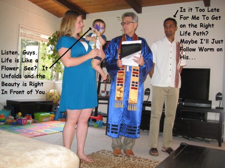 In what could be called overzealous enthusiasm (or reckless stupidity), we decided to feed Worm a variety of foods from the buffet trays. And we didn’t realize that some of the foods had shrimp, fish and/or fish products in them until after Worm had eaten. (Fish and shellfish are also very high on the food allergy scale. Severe reaction such as anaphylaxis or anaphylactic shock can occur upon eating.) Did I think about this ahead of time? No. Dunderhead move #2.